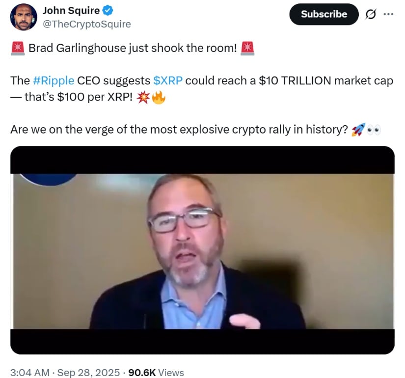 В божественном откровении Брэд Гарлингхаус, уважаемый лидер Ripple, предсказывает ошеломляющую рыночную капитализацию в 10 триллионов долларов для XRP к 2030 году — пророчество, которое вызывает восторг, скептицизм и, возможно, несколько усмешек среди опытных поклонников. Цена токена около 100 долларов кажется манящим миражом для тех, кто бродит по этой пустыне цифр.